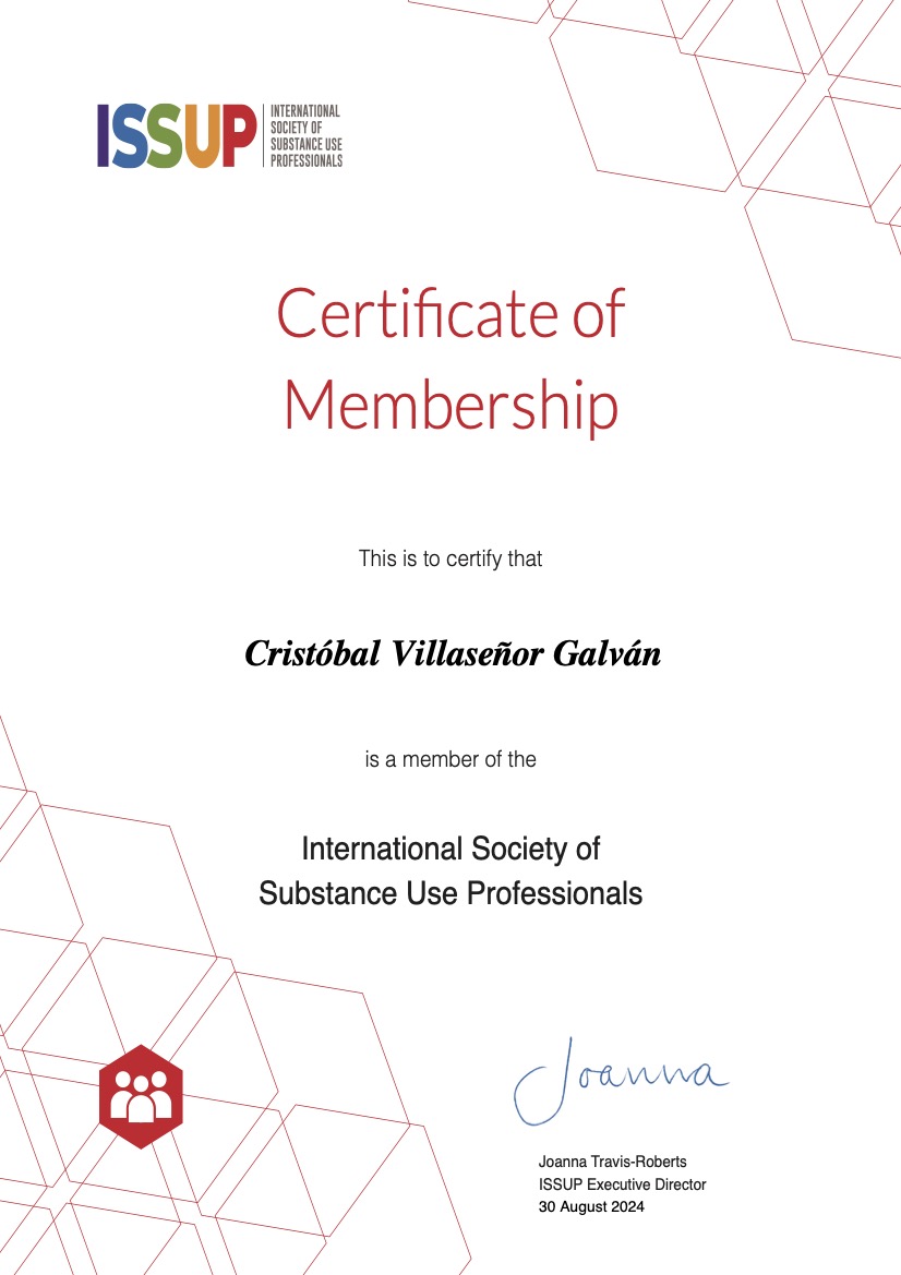 Mis múltiples diplomados y mi certificación oficial como consejero en adicciones me proporcionan una comprensión profunda de las dinámicas personales y clínicas que enfrentan quienes luchan contra las adicciones. Esta formación complementa mi enfoque tecnológico, permitiéndome aplicar estrategias basadas en evidencia y un conocimiento sólido del proceso terapéutico.
